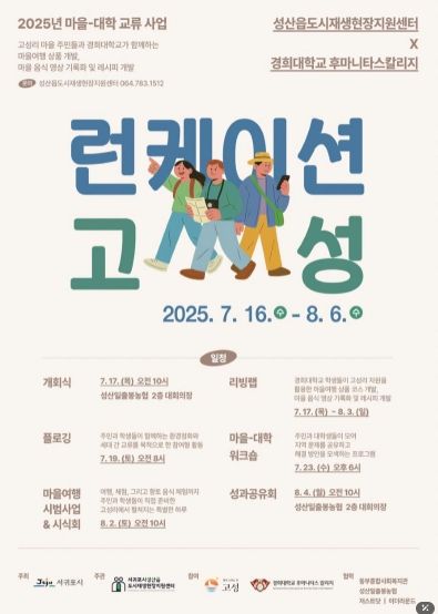 '런케이션 인 고성'은 성산읍 도시재생현장지원센터, 경희대학교 후마니타스칼리지(Humanitas College)와 고성리 도시재생주민협의체가 함께 참여하는 프로그램이다.