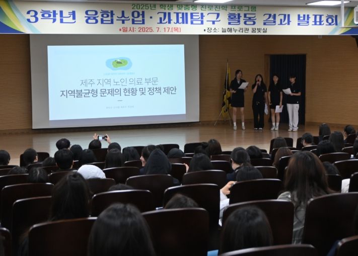 ㈜한국탑뉴스 차복원 기자 | 제주도교육청 대정여자고등학교는 11일부터 18일까지 3학년 학생들을 대상으로‘2025학년도 3학년 융합 수업 프로그램’을 운영했다.