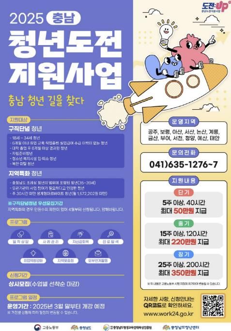 참여 신청은 ‘고용24’ 온라인 플랫폼 또는 충남청년센터 전화 문의를 통해 가능하며, 사전 상담을 거쳐 선착순으로 모집한다.