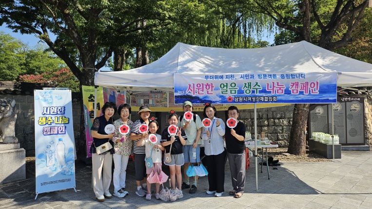 ㈜한국탑뉴스 한기석 기자 | 남원시여성단체협의회(회장 이은진)는 지난 2일 남원 주요 관광지인 광한루에서 방문객을 대상으로 남원의 매력을 알리고 쾌적한 관광 환경 조성에 기여하고자 얼음생수 무료 나눔 행사를 개최했다.