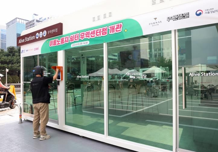 현재 강남구는 냉방시설과 정수기 등 편의시설을 갖춘 이동노동자 쉼터를 구 전역에 5개소를 설치해 24시간 운영하고 있다. 구는 8일부터 이곳에 민간 기업이 후원한 얼음생수, 캔커피, 이온음료 등을 비치해 누구나 자유롭게 이용할 수 있도록 할 계획이다.
