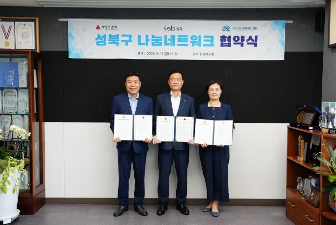 ㈜한국탑뉴스 차복원 기자 | 서울 성북구가 11일 성북복지재단과 서울사회복지공동모금회와 함께 ‘성북구 나눔네트워크’ 협약(MOU)을 체결했다. 이번 협약은 지난 7월 1일 공식 출범한 성북복지재단의 첫 대외 협력으로, 민·관 협력을 통한 촘촘한 복지 안전망 구축과 나눔 문화 확산의 기반이 될 전망이다.