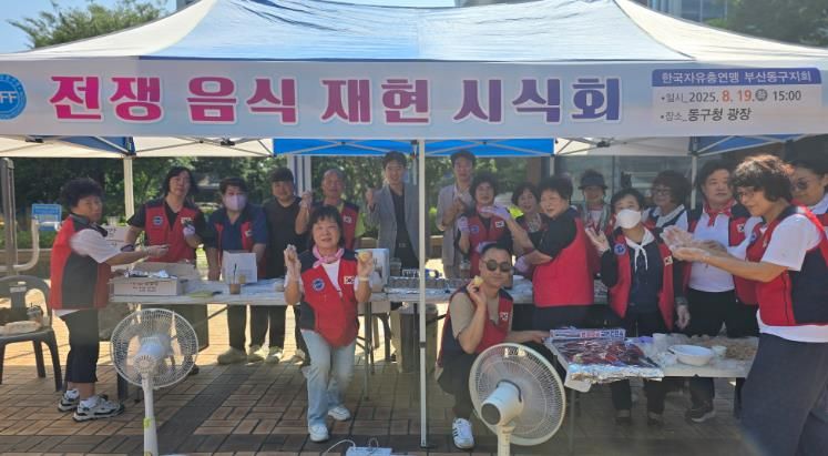 ㈜한국탑뉴스 차복원 기자 | 한국자유총연맹 부산동구지회는 6·25 전쟁 75주년을 맞아, 을지 훈련 기간인 8월 19일 부산동구청 광장에서 ‘6·25 전쟁음식 재현 시식회’를 개최했다.