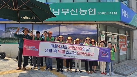 ㈜한국탑뉴스 차복원 기자 | 부산 남구는 8월 안전 점검의 날을 맞이하여, 지난 25일 용호동 남부산농협 용호지점 일원에서 주민 안전의식 향상과 여름철 재난 예방을 위해 ‘안전한바퀴’ 캠페인을 펼쳤다.