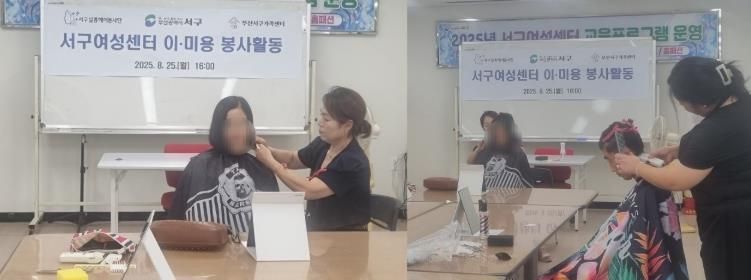 서구 여성센터 강사진 및 교육 수료생으로 구성된 서구 살롱헤어봉사단은 이미용 서비스가 필요한 주민들을 위해 매월 무료로 헤어 커트 서비스 활동을 하고 있다.