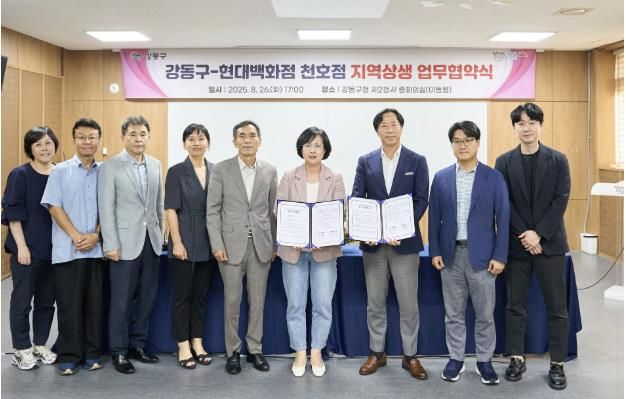 ㈜한국탑뉴스 차복원 기자 | 강동구는 지난 26일 현대백화점 천호점과 지역경제 활성화와 상생 협력을 위한 업무협약을 체결하고 소상공인을 위한 특별 판매전 ‘현대백화점 로컬상회’를 운영한다고 밝혔다.
