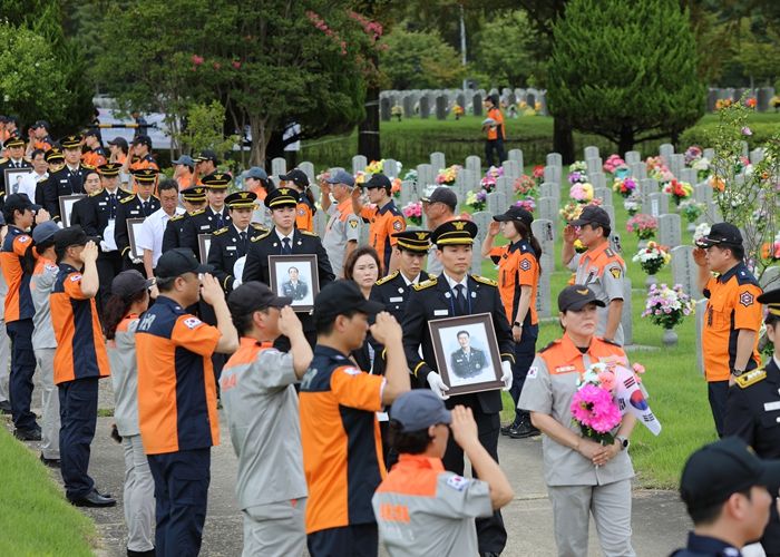 ㈜한국탑뉴스 차복원 기자 | 서울시 소방재난본부는 8월 26일 국립대전현충원(소방공무원 묘역)에서 순직 소방공무원 6位(위)에 대한 합동 안장식을 거행했다고 밝혔다.