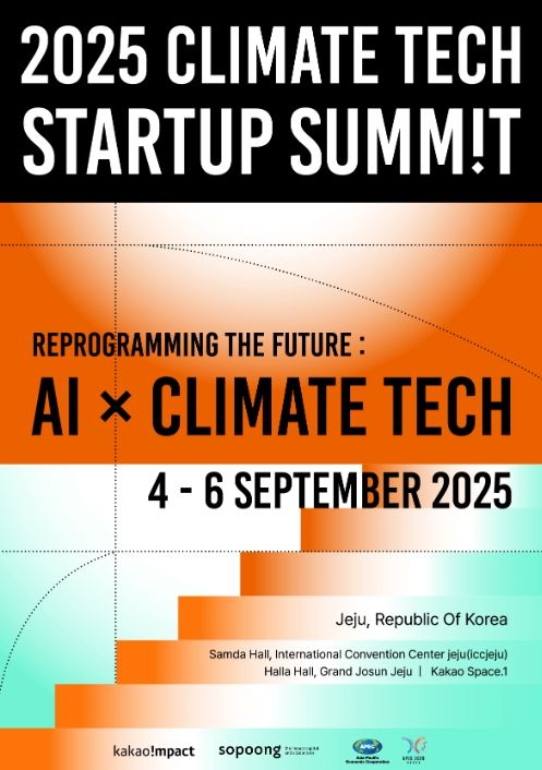 ㈜한국탑뉴스 차복원 기자 | 중소벤처기업부는 'APEC 중소기업 장관회의'의 공식 연계행사로 카카오임팩트(이사장 류석영), 소풍벤처스(대표 한상엽)와 함께 ‘2025 기후테크 스타트업 서밋’(9.4~9.6)을 제주국제컨벤션센터 삼다홀 등에서 개최한다고 밝혔다.