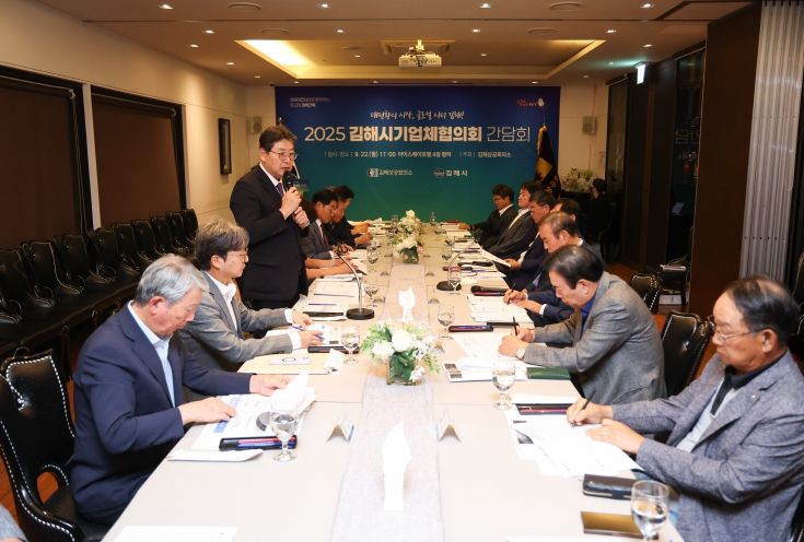 ㈜한국탑뉴스 차복원 기자 | 김해시는 22일 오전 11시 김해아이스퀘어호텔 회의실에서 지역 기업체협의회와 간담회를 개최했다고 밝혔다.