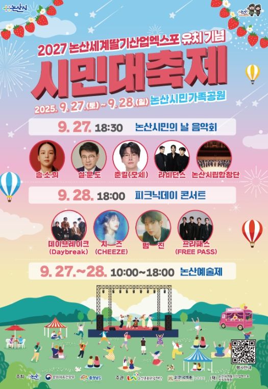 ㈜한국탑뉴스 차복원 기자 | 논산시는 오는 27일부터 28일까지 논산시민가족공원에서 ‘2027 세계딸기산업엑스포 유치기념 시민대축제’를 개최한다.