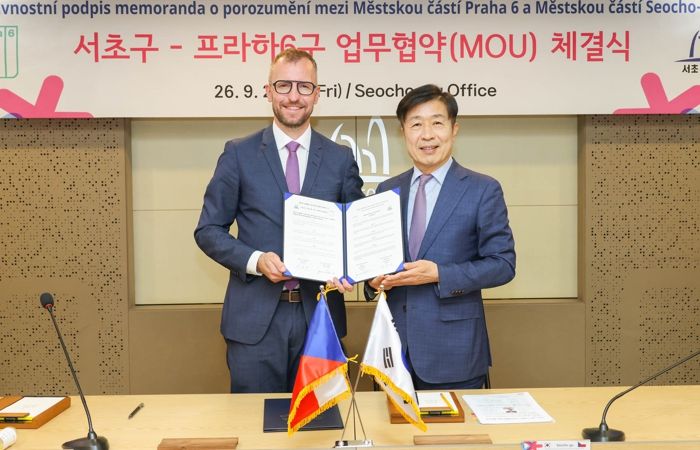 ㈜한국탑뉴스 차복원 기자 | 서울 서초구는 지난 26일 구청 5층 대회의실에서 체코 프라하 6구와 문화, 예술, 교육 분야 등 상호 교류 우호증진을 위한 우호도시협정 양해각서(MOU)를 체결했다고 밝혔다.