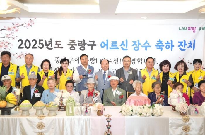 ㈜한국탑뉴스 차복원 기자 | 중랑구는 지난 9월 26일, 중랑구 효사랑봉사회 주관으로 ‘2025년 중랑구 어르신 장수 축하 잔치’를 열고 동별 최고령 어르신과 가족들을 초청해 감사의 마음을 전하는 뜻깊은 시간을 가졌다.