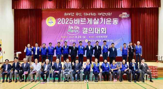 ㈜한국탑뉴스 차복원 기자 | 보령시는 바르게살기운동보령시협의회(회장 이성천)가 29일 대천체육관에서 기관·단체장, 회원 및 시민 등 1,500여 명이 참석한 가운데 바르게살기운동 미소·친절·청결·칭찬 결의대회를 개최했다고 밝혔다.