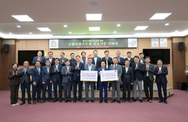 ㈜한국탑뉴스 차복원 기자 | 논산시는 29일 공주시청 대백제실에서 공주시 및 양 시 농협 관계자들과 함께 ‘고향사랑기부금 상호 기탁식’을 개최했다고 밝혔다.