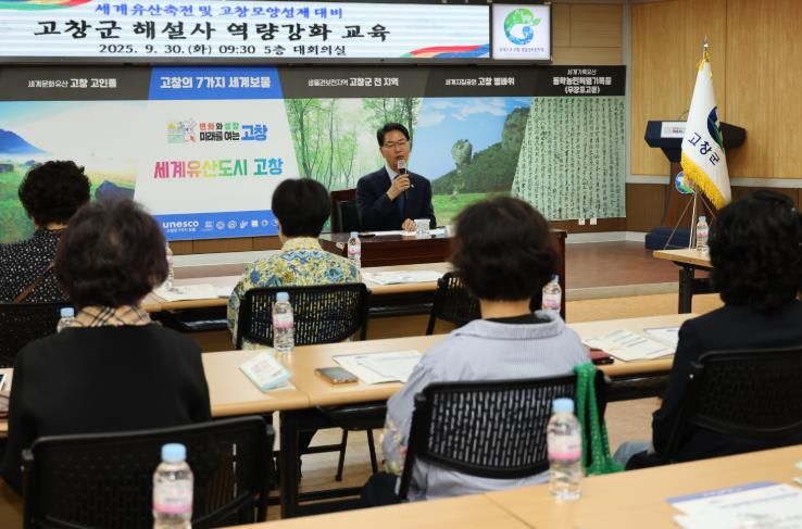 ㈜한국탑뉴스 차복원 기자 | 고창군이 30일 군청 5층 회의실에서 ‘2025 세계유산축전(10월2~22일)’과 ‘제52회 고창모양성제(10월29일~11월2일)’를 앞두고 해설사 친절교육을 실시했다.