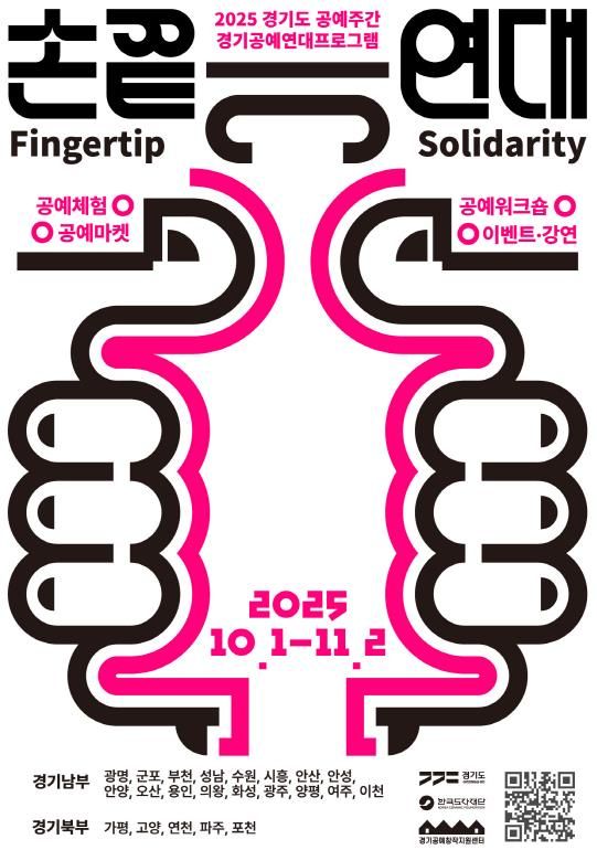 개막 프로그램인 ‘손끝연대’는 도내 공예인들이 지역과 장르를 넘어 하나의 네트워크로 모이는 프로그램이다. 총 22개 시군 175명의 공예인이 참여해 개별 공방에서 전시·체험·교육 프로그램을 운영하고, 도민이 일상에서 공예를 경험할 수 있도록 다양한 홍보 활동도 병행한다. 특히 흩어져 활동하던 공예인들을 연결해 공동의 비전을 공유하고, 장기적으로 경기도 전체 공예 생태계 강화를 모색한다는 점에서 의미가 크다.