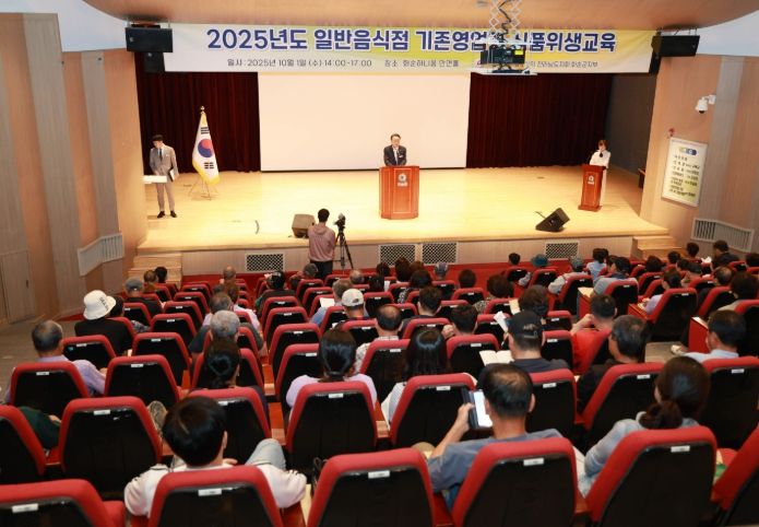 ㈜한국탑뉴스 차복원 기자 | 화순군과 (사)한국외식업중앙회 전라남도지회 화순군 지부(지부장 이향심)는 지난 10월 1일 하니움스포츠문화센터 만연홀에서 관내 일반음식점 영업주 200여 명을 대상으로 '2025년도 일반음식점 영업자 위생교육을 진행했다.