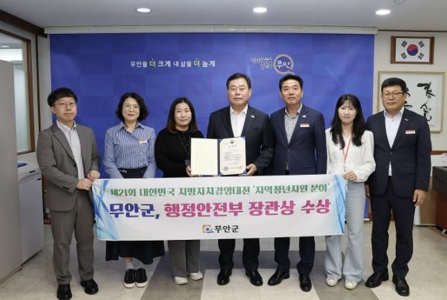 ㈜한국탑뉴스 차복원 기자 | 전남 무안군은 행정안전부와 한국일보가 공동으로 주최한 '제21회 대한민국 지방자치경영대전'에서 지역청년 지원 분야 우수기관으로 선정되어 행정안전부 장관 표창을 수상했다.