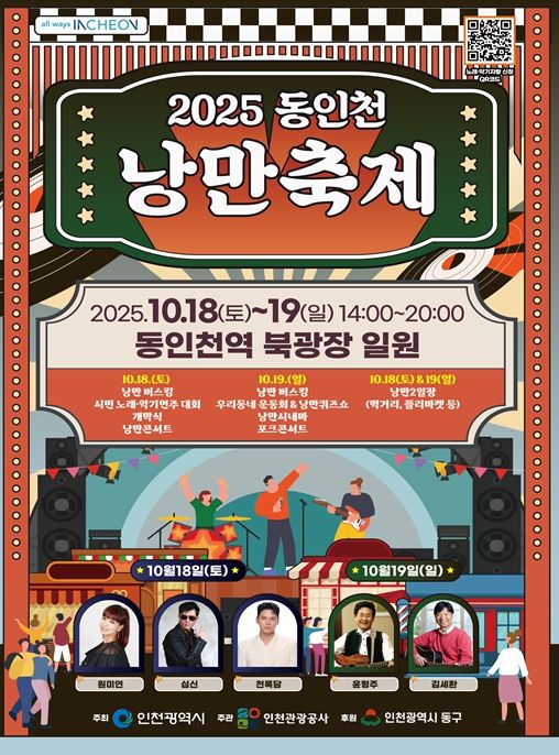 ㈜한국탑뉴스 차복원 기자 | 인천광역시는 오는 10월 18일부터 19일까지 이틀간 동인천역 북광장에서 ‘2025년 동인천 낭만축제’를 개최한다고 밝혔다.
