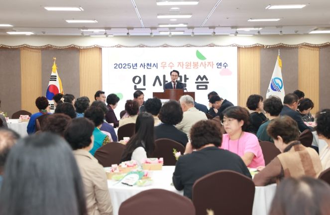 ㈜한국탑뉴스 차복원 기자 | 사천시는 지역 사회에 따뜻함을 전달하고 있는 자원봉사자들의 노고를 격려하기 위해 ‘2025년 우수 자원봉사자 연수’를 개최했다고 20일 밝혔다.
