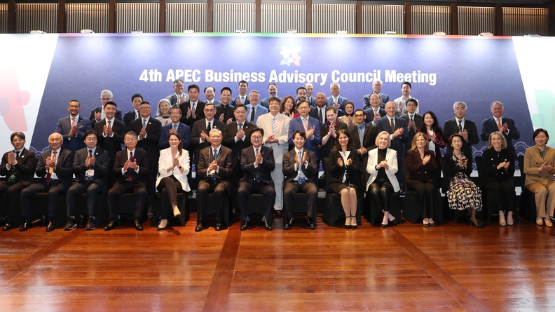 ▲26일(일) 오전 부산에서 열린 '2025 APEC 기업자문위원회 제4차 회의' 개막식 참석자들이