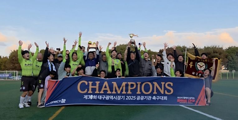 ㈜한국탑뉴스 구민성 기자 | 대구 북구청 축구동호회가 지난 10월 25일 열린 제31회 대구시장기 공공기관 축구대회 결승전에서 대구광역시청을 3:2로 꺾고 1997년 제7회 대회 이후 28년여 만에 우승을 차지했다.