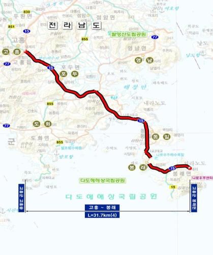 ㈜한국탑뉴스 차복원 기자 | 고흥군은 30일 국토교통부가 '제5차 국도・국지도 건설계획 (2021~2025)'을 변경·고시함에 따라 ‘국도 15호선 고흥~봉래 확장사업’의 신속한 추진이 탄력을 받게 됐다고 밝혔다.