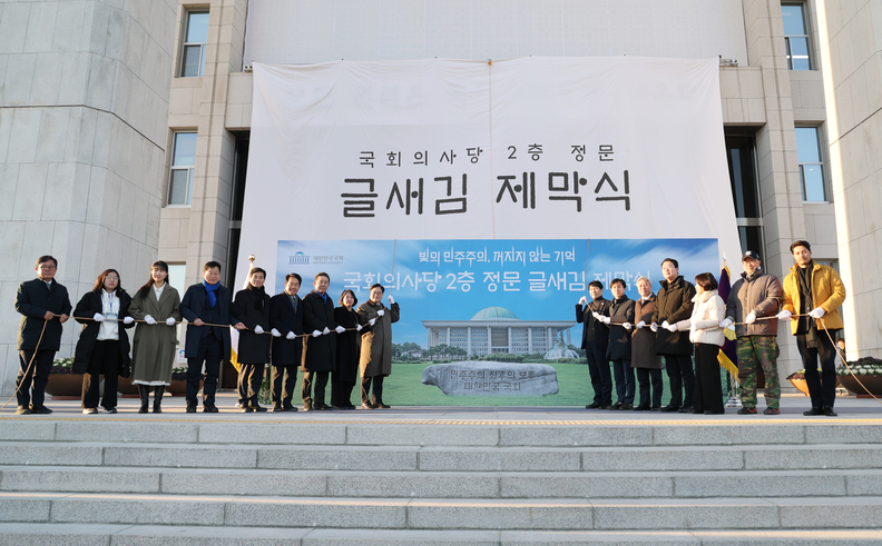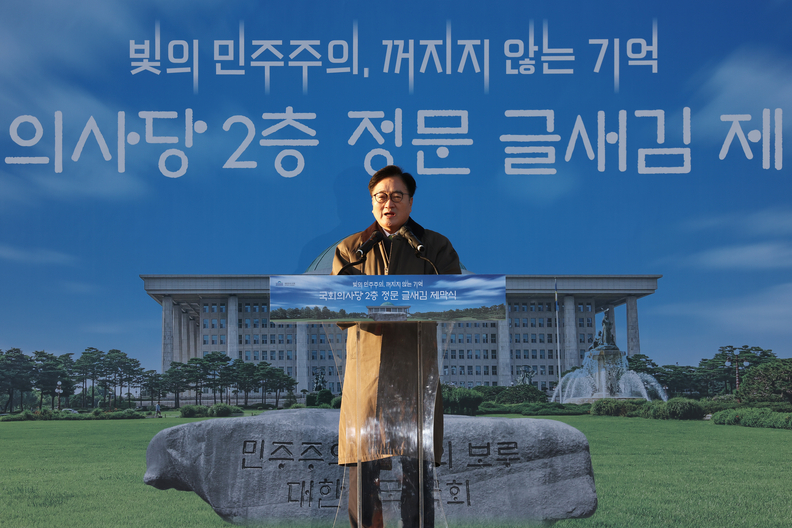 우 의장은 “지난 1년 위기의 순간에도 길은 국민 속에 있고, 희망 역시 국민 속에 있다는 것을 보여주었다”면서 “오늘의 글새김은 헌정(憲政)의 수호자이자 대한민국이 이룬 모든 성취의 주인인 주권자 국민께 바치는 국회의 헌정(獻呈)”이라고 강조했다.