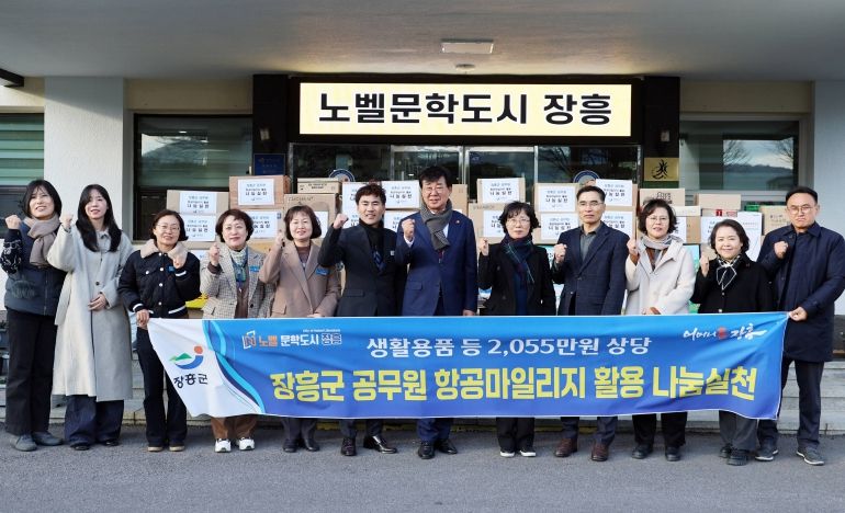 ㈜한국탑뉴스 차복원 기자 | 장흥군 공무원 122명이 공적 항공마일리지를 활용해 마련한 20,558,250원 상당의 생필품 197점을 지역 취약계층에 전달했다.