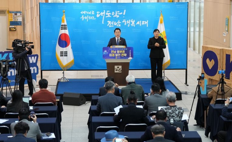 ㈜한국탑뉴스 차복원 기자 | 김영록 전라남지사는 24일 동부지역본부에서 열린 동부권 송년 기자 브리핑에서 2026년을 ‘동부권 100년 대도약의 원년’으로 선포하고 전남 미래 성장의 핵심 거점으로 육성하는 동부권 발전 전략을 발표했다.