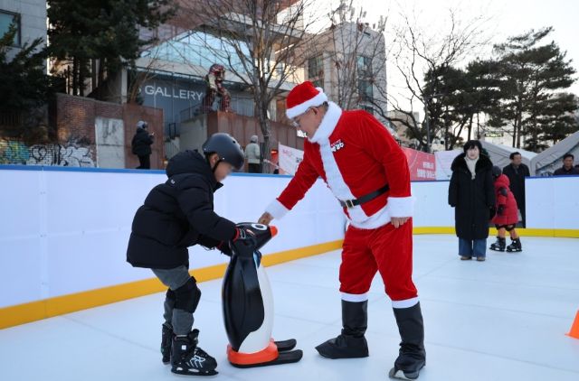 이날 일일 산타로 나선 박강수 마포구청장은 아이스링크를 찾은 20여 명의 아이들과 가위바위보 게임 등을 하며 크리스마스의 설렘을 나눴다.