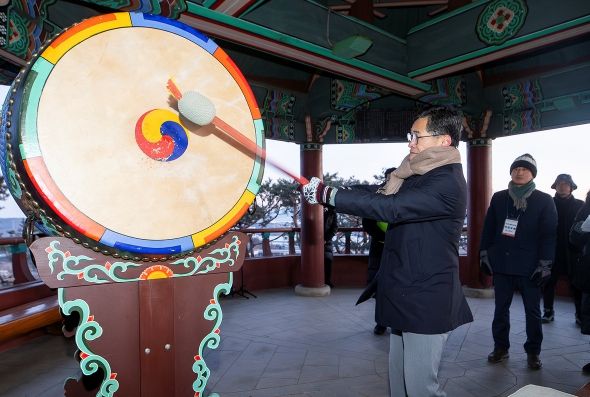 행사는 천지풍물단의 길놀이 풍물패 공연과 국악 아카펠라 밴드 축하공연을 시작으로 양천의 희망과 미래를 기원하는 대북 타고, 주민과 함께 외치는 해돋이 카운트다운 순으로 진행됐다.