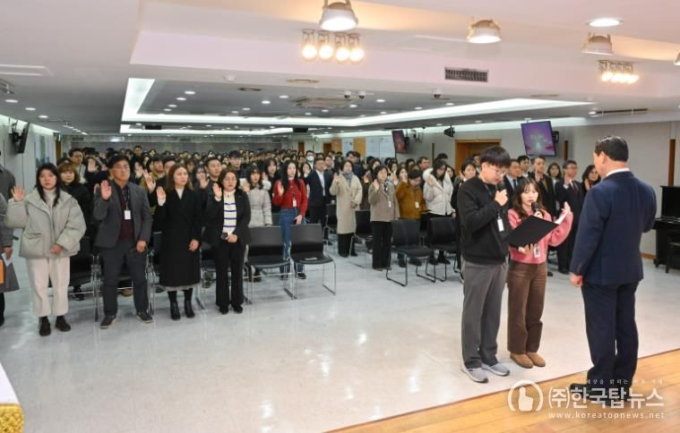 ㈜한국탑뉴스 차복원 기자 | 대구 남구는 지난 1월 2일 드림피아홀에서 열린 시무식에서 전 직원을 대상으로 청렴실천 결의문을 낭독하며, 공직자로서의 각오와 결의를 다지는 시간을 가졌다.