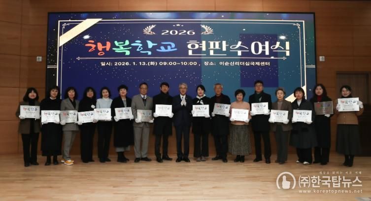 ㈜한국탑뉴스 고화랑 기자 | 경상남도교육청은 2026년 신규 지정 행복학교 교직원 100명을 대상으로 13~15일 이순신리더십국제센터에서 직무 연수와 신규 및 재지정 행복학교 현판 수여식을 열었다.