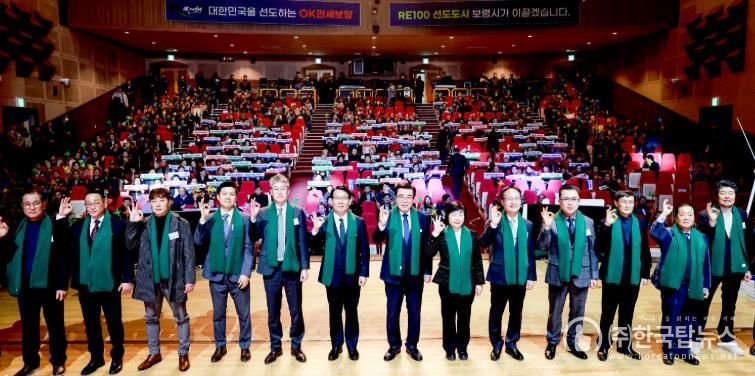 ㈜한국탑뉴스 송행임 기자 | 보령시는 13일 보령문화예술회관 대공연장에서 ‘바람과 햇빛, OK만세보령의 미래가 되다’를 주제로 시민 800여 명이 참석한 가운데 RE100 비전선포식 행사를 개최했다.