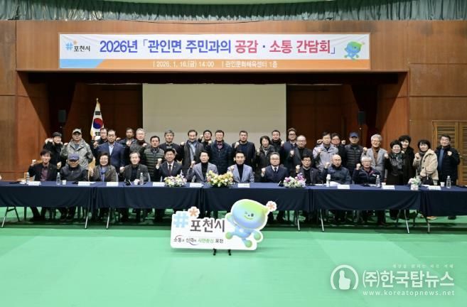㈜한국탑뉴스 송행임 기자 | 포천시는 지난 16일 영북면과 관인면에서 ‘2026년 주민과의 공감·소통 간담회’를 개최해 주민들과 직접 만나 지역 현안과 발전 방향에 대해 소통하는 시간을 가졌다.