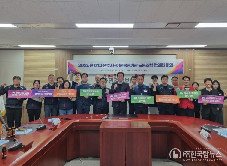 ㈜한국탑뉴스 송행임 기자 | 원주시는 지난 19일 강원혁신도시 이전공공기관 노동조합 협의회와 함께 혁신도시 정주 여건 개선과 지속 가능한 발전을 위한 주요 현안을 논의했다.