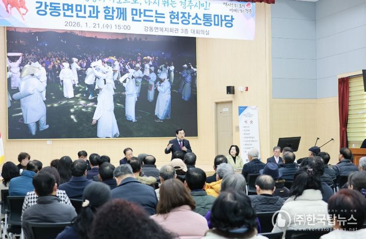 ㈜한국탑뉴스 송행임 기자 | 경주시가 21일 지역 주민과 직접 소통하는 ‘2026년 시민과 함께 만드는 현장소통한마당’을 시작하고, 안강읍과 강동면을 차례로 찾아 새해 첫 읍면동 현장 행보에 나섰다.