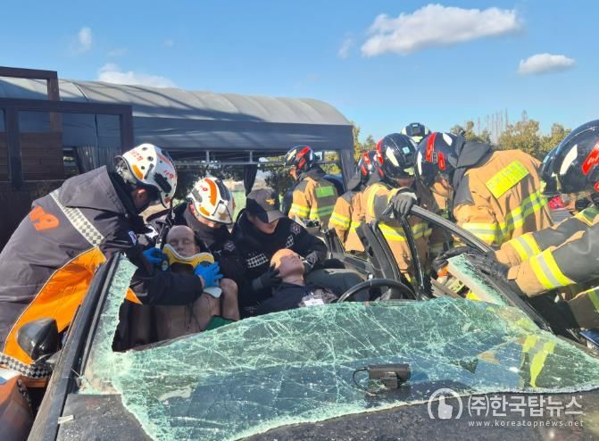 핵심 훈련 내용은 ▲화재 분야(소방호스 전개, 포위 주수, 농연 검색) ▲구조 분야(구조장비 조작, 로프 하강, 교통사고 인명구조) ▲구급 분야(전문 심폐소생술, 응급처치 및 환자 이송) 등 현장 활동에 필수적인 3대 영역을 중심으로 구성됐으며 재난현장을 가정하여 동시 진행됐다.