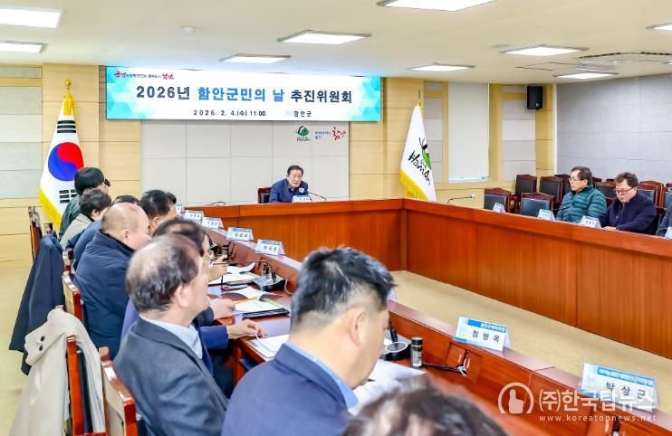 ㈜한국탑뉴스 송행임 기자 | 함안군은 2026년 함안군민의 날 행사를 성공적으로 개최하기 위해 지난 4일 군청 별관 3층 중회의실에서 조근제 함안군수를 위원장으로 한 ‘2026년 함안군민의 날 추진위원회’ 회의를 열었다고 밝혔다.