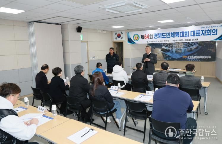 ㈜한국탑뉴스 송행임 기자 | 예천군은 4일 오전 11시, 예천군스타디움 1층 회의실에서 제64회 경북도민체육대회 출전을 위한 종목단체 대표자회의를 개최하고, 대회 전반에 대한 주요 일정과 운영 사항을 공유했다.
