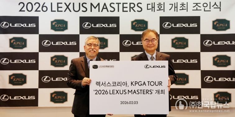 ㈜한국탑뉴스 구민성 기자 | 렉서스코리아와 사)한국프로골프협회(이하 KPGA)가 2월 3일(화) 경기도 성남시 소재 KPGA빌딩(10층)에서 ‘2026 렉서스 마스터즈’ 대회 개최 조인식을 가졌다.