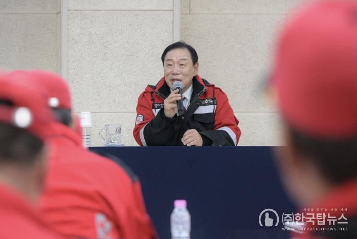 ㈜한국탑뉴스 송행임 기자 | 최민호 세종특별자치시장이 지난 4일 조치원읍 세종테크노파크에서 찾아가는 현장소통을 통해 산림재난대응단과 산불감시원의 의견에 귀를 기울이며 진솔한 소통을 나눴다.