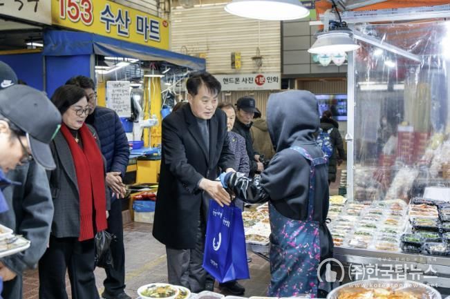 ㈜한국탑뉴스 송행임 기자 | 하은호 군포시장은 설 명절을 앞둔 지난 5일 관내 전통시장을 찾아 장보기 행사를 진행하며 시장 상인들을 격려했다.