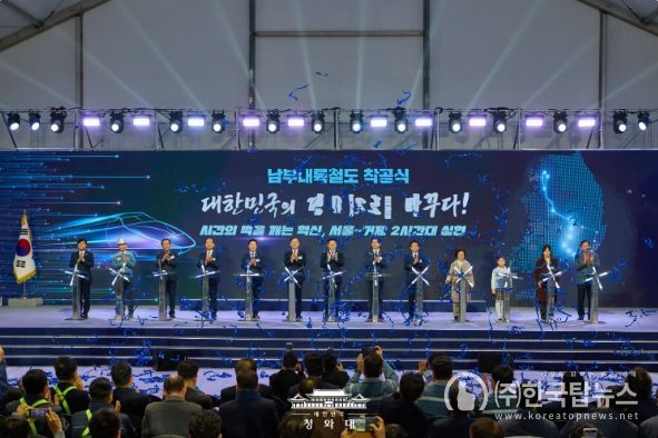 ㈜한국탑뉴스 차복원 기자 | 이재명 대통령은 6일 "남부내륙철도는 단순히 선로 하나를 놓는 사업이 아니다"라며 "수도권에 모든 것이 집중된 '일극 체제'에서 벗어나 사람과 지역을 잇고, 기회를 연결하며, 지역의 성장동력을 만들어내는 국토 대전환의 시작"이라고 말했다.