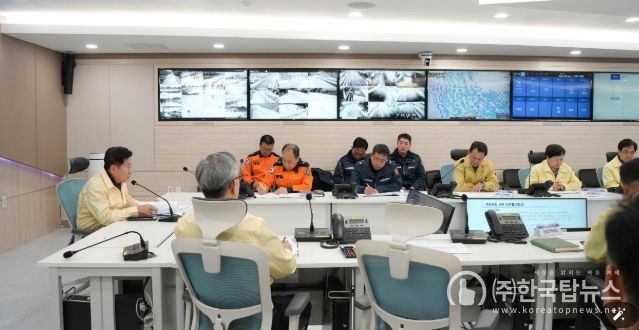 ㈜한국탑뉴스 송행임 기자 | 제주특별자치도가 8일 오전 10시 도청 재난상황실에서 오영훈 지사 주재로 대설·한파 재난대책회의를 열고 도민과 관광객 안전 확보를 최우선으로 피해 최소화에 총력 대응하고 있다.