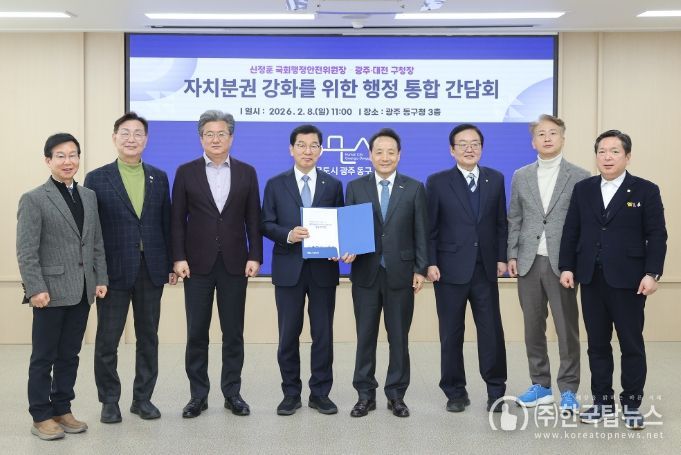 ㈜한국탑뉴스 차복원 기자 | 국회 행정안전위원회가 9일 입법 공청회를 시작으로 행정통합 법안을 본격 논의할 예정인 가운데 광주광역시구청장협의회 5개 자치구청장과 대전광역시 중구청장, 유성구청장이 행정통합 추진 과정에서 자치구의 입장이 제도적으로 반영돼야 한다며 공동으로 목소리를 냈다.