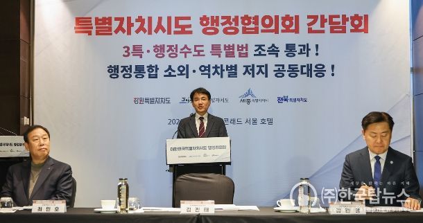 이날 모임은 휴일임에도 불구하고 대표회장인 김 지사의 제안에 따라 이루어졌으며, 최근 국회와 정치권의 ‘3특·행정수도 특별법’에 대한 법안심사 지연과 행정통합 소외 우려에 대응방안을 논의했다.