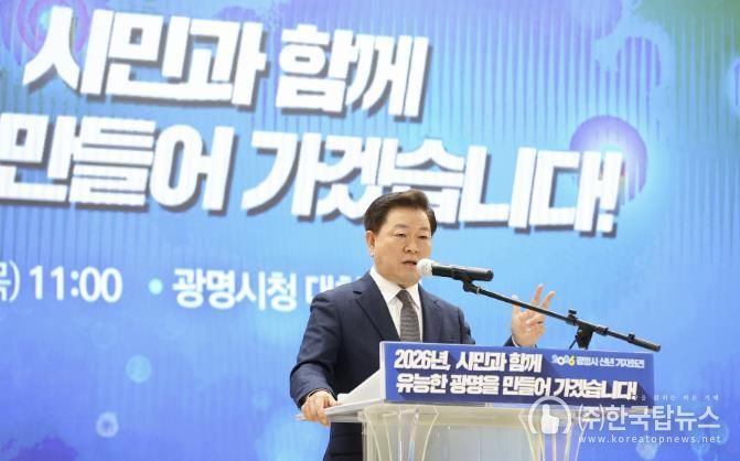 박 시장은 12일 오전 시청 대회의실에서 신년 기자회견을 열고 “지금의 광명은 행정이 주도하는 도시가 아니라 유능한 시민이 스스로 선택하고 참여하며 만들어 온 도시”라며 “2026년은 시민주권, 평생학습, 탄소중립, 자원순환, 사회연대경제, 정원도시, 기본사회 등 광명의 핵심 가치들을 유능한 시민과 함께 완성의 단계로 끌어올리는 해가 될 것”이라고 선언했다.