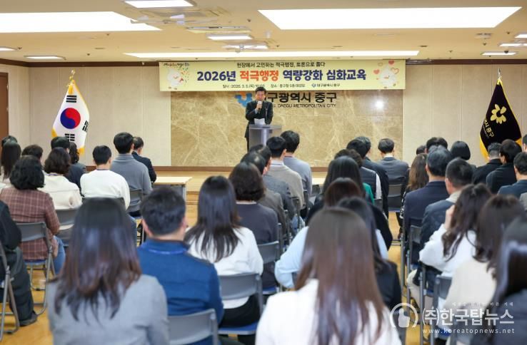 ㈜한국탑뉴스 송행임 기자 | 대구 중구는 지난 5일 구청 대강당에서 ‘인공지능(AI) 참여형 적극행정’을 주제로 적극행정 역량 강화 심화 교육을 진행했다.